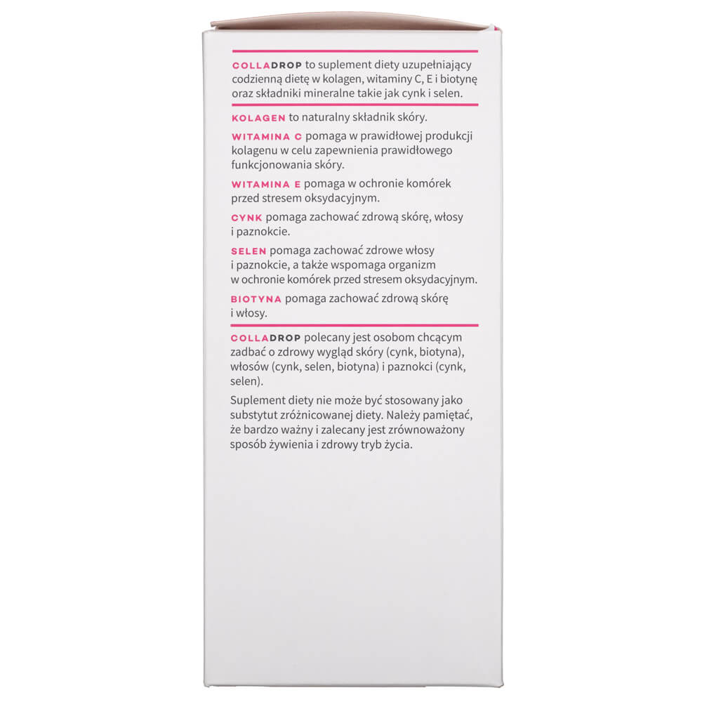Vanduo, NatiCol ® kolagenas iš jūros žuvų odos, saldiklis: invertuotas cukrus, L-askorbo rūgštis (vitaminas C), cinko gliukonatas, konservantas: kalio sorbatas, D-alfa-tokoferolis (vitaminas E), natrio selenitas, D-biotinas.