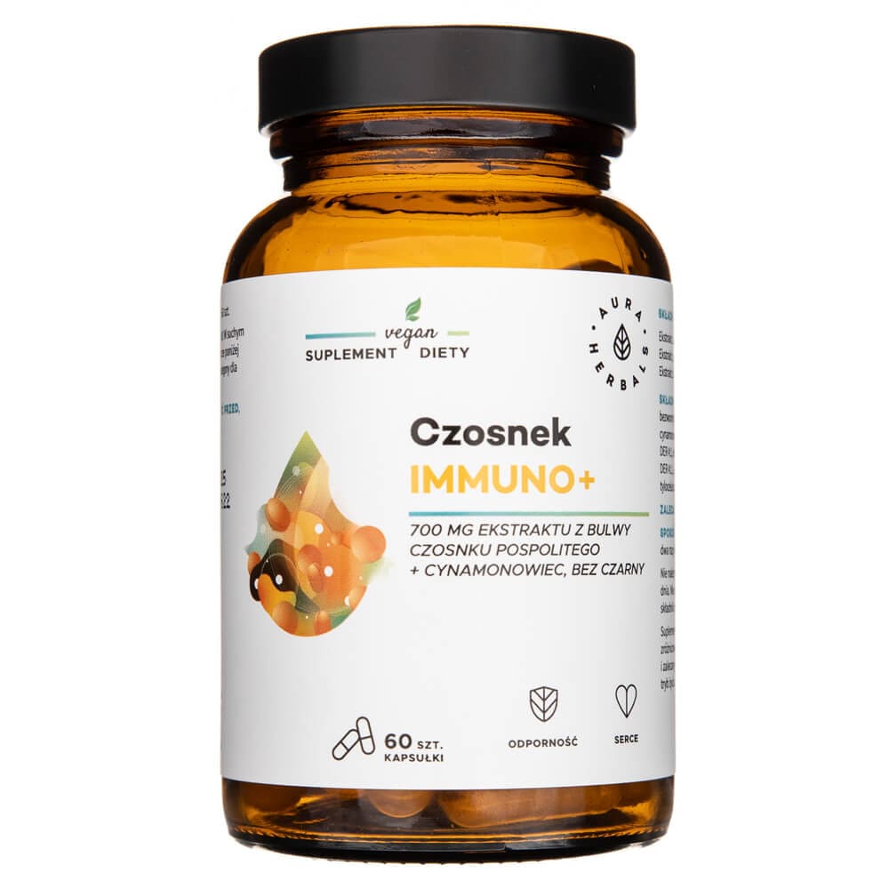 Maisto papildas Česnakas Immuno natūraliai palaiko imunitetą ir normalią širdies veiklą. Jo sudėtyje yra 700 mg paprastojo česnako ekstrakto paros dozėje ir natūralūs česnako, Ceilono cinamono ir šeivamedžio uogų ekstraktai.