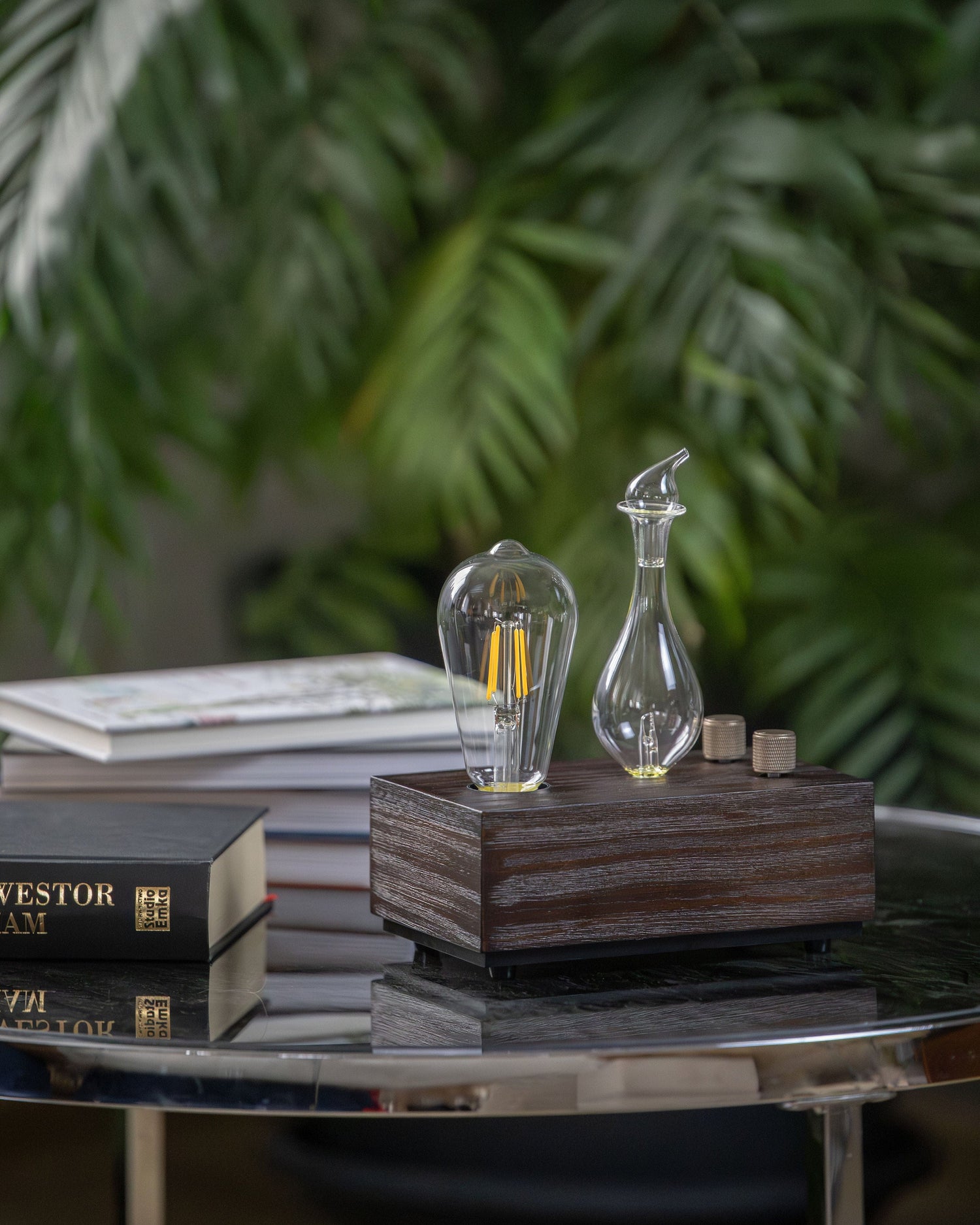 Sukurkite unikalią atmosferą savo namuose su mūsų eterinio aliejaus nebulizatoriumi su elegantiška lempute. Tai elegancijos ir modernaus dizaino derinys, kuris puikiai papildys bet kokį interjerą.