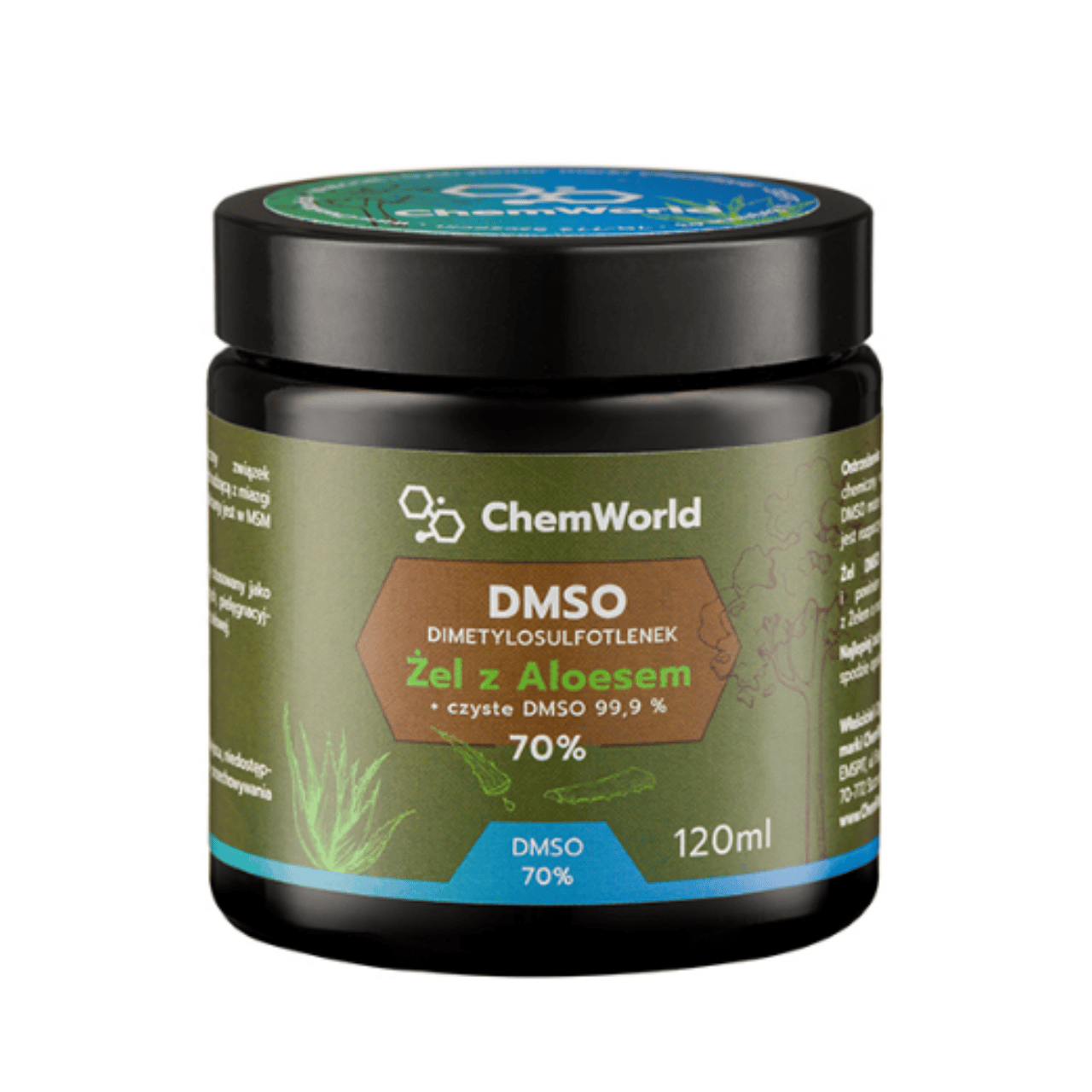 DMSO 70% gelis yra gryniausio DMSO CZDA 99,96% ir gryniausio Meksikos alavijo 99% derinys. Šis derinys sukuria kristalinę gelio formą, kad būtų patogiau naudoti.