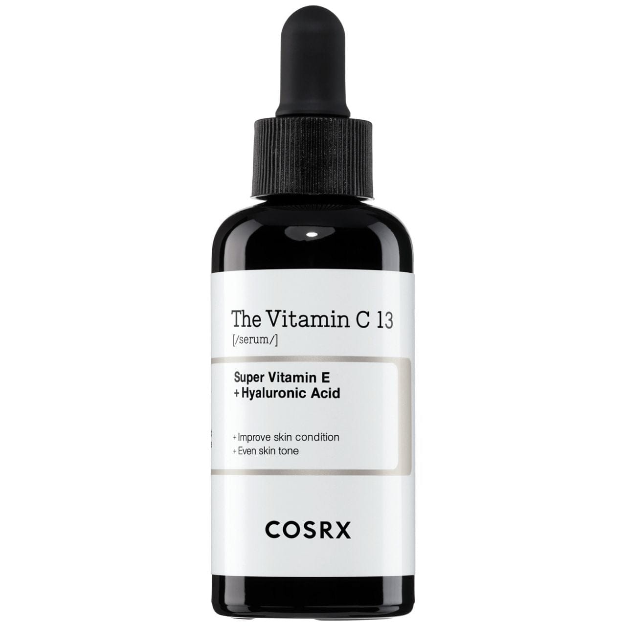 COSRX Vitaminas C 13 serumas yra koncentruotas serumas su 13 % gryno vitamino C ( L-askorbo rūgštimi ) – ideali koncentracija tiems, kurie dar nėra susipažinę su šiuo ingredientu arba turi jautrią odą. Ši formulė veiksmingai pašviesina odos spalvos pakitimus ir išlygina odos toną be dirginimo pavojaus.