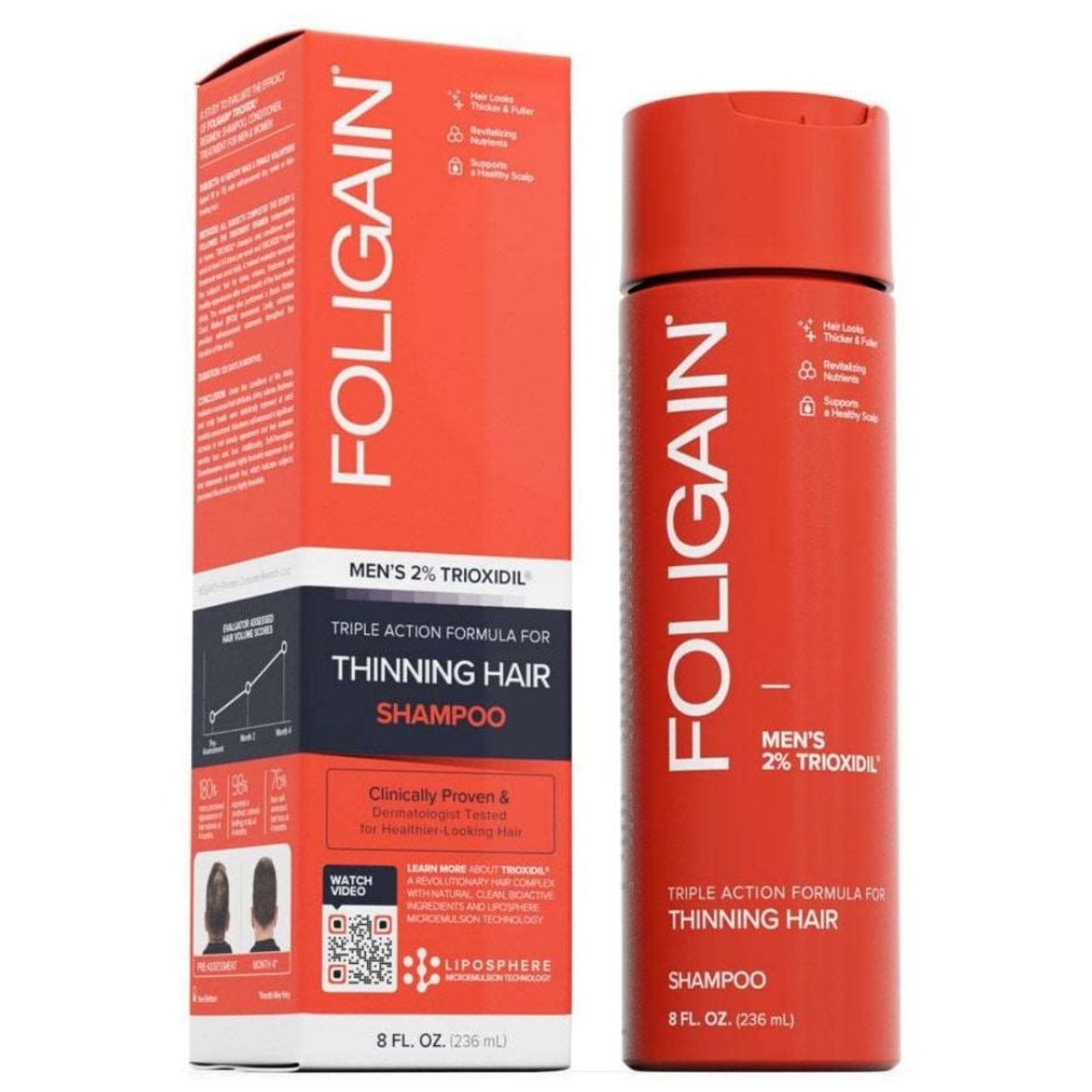 FOLIGAIN šampūnas su 2% trioksidilo yra kliniškai išbandyta formulė vyrams, kurių plaukai retėja. Jame yra patentuotas Trioxidil kompleksas , kuris, kaip parodė tyrimai, per 4 mėnesius padidina plaukų apimtį 180% ir sumažina plaukų slinkimą 76% . Jis blokuoja DHT, valo galvos odą ir stiprina plaukų folikulus. Be parabenų, sulfatų ir ftalatų !