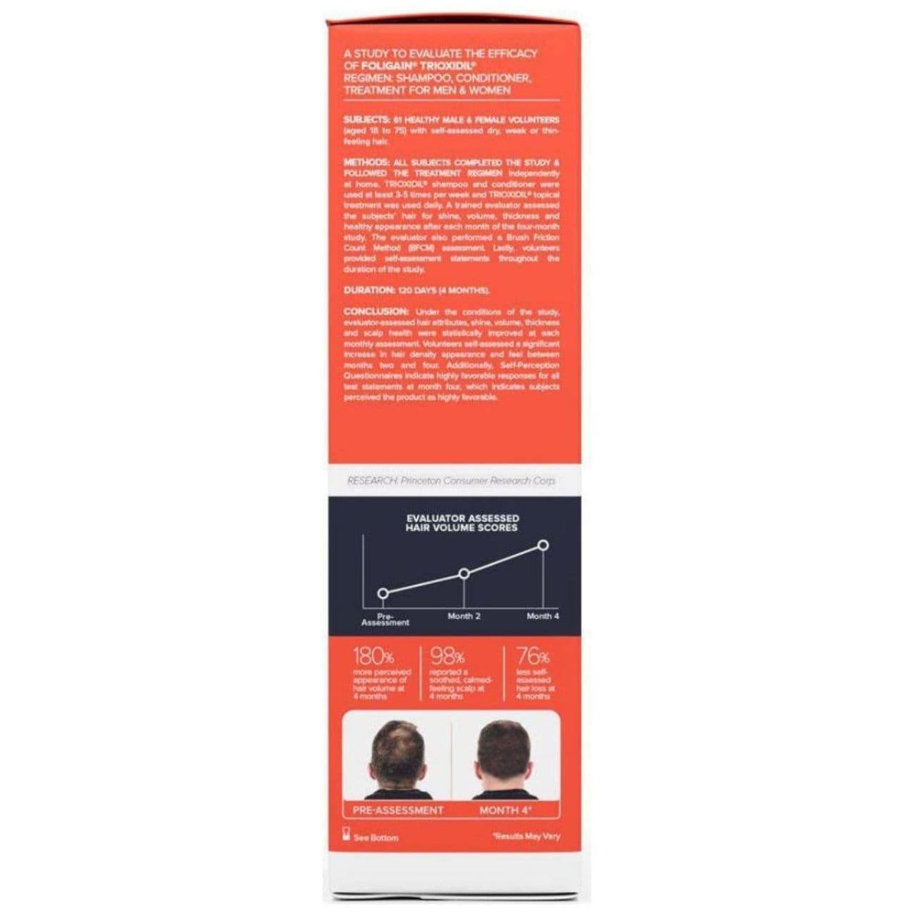 FOLIGAIN šampūnas atspindi naujausius pasiekimus kovoje su androgenine alopecija . Pagrindinis ingredientas yra patentuotas Trioxidil ® kompleksas, kurio koncentracija yra 2%, ir kurio veiksmingumas buvo patvirtintas griežtais klinikiniais tyrimais. Rezultatai yra įspūdingi: 180% padidėjęs plaukų tūris po 4 mėnesių, 76% sumažėjęs plaukų slinkimas per tą patį laikotarpį, ir 75% padidėjęs tankis po vos 2 mėnesių naudojimo.