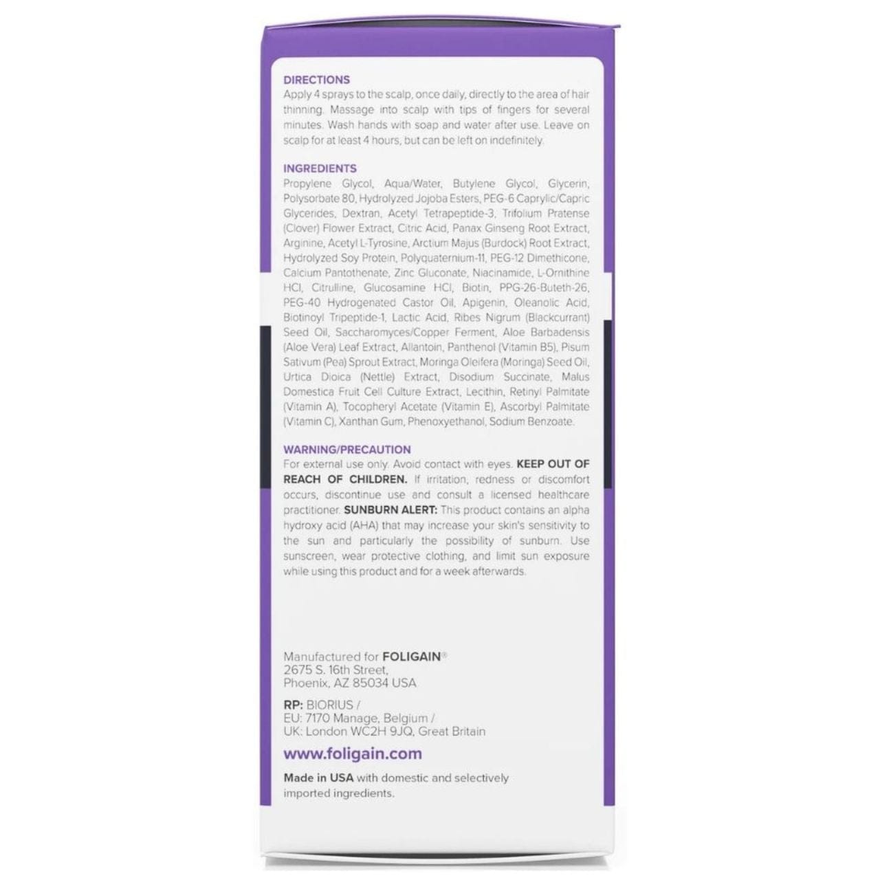 FOLIGAIN pažangus plaukų atauginimo gydymas moterims su 10% trioksidilo yra novatoriškas trigubos veiklos gydymas su maksimaliu 10% trioksidilo stiprumu moterims. Klinikiniais tyrimais įrodyta formulė per 4 mėnesius padidina plaukų apimtį 180%, veiksmingai mažina plaukų slinkimą ir skatina storesnius, pilnesnius plaukus.