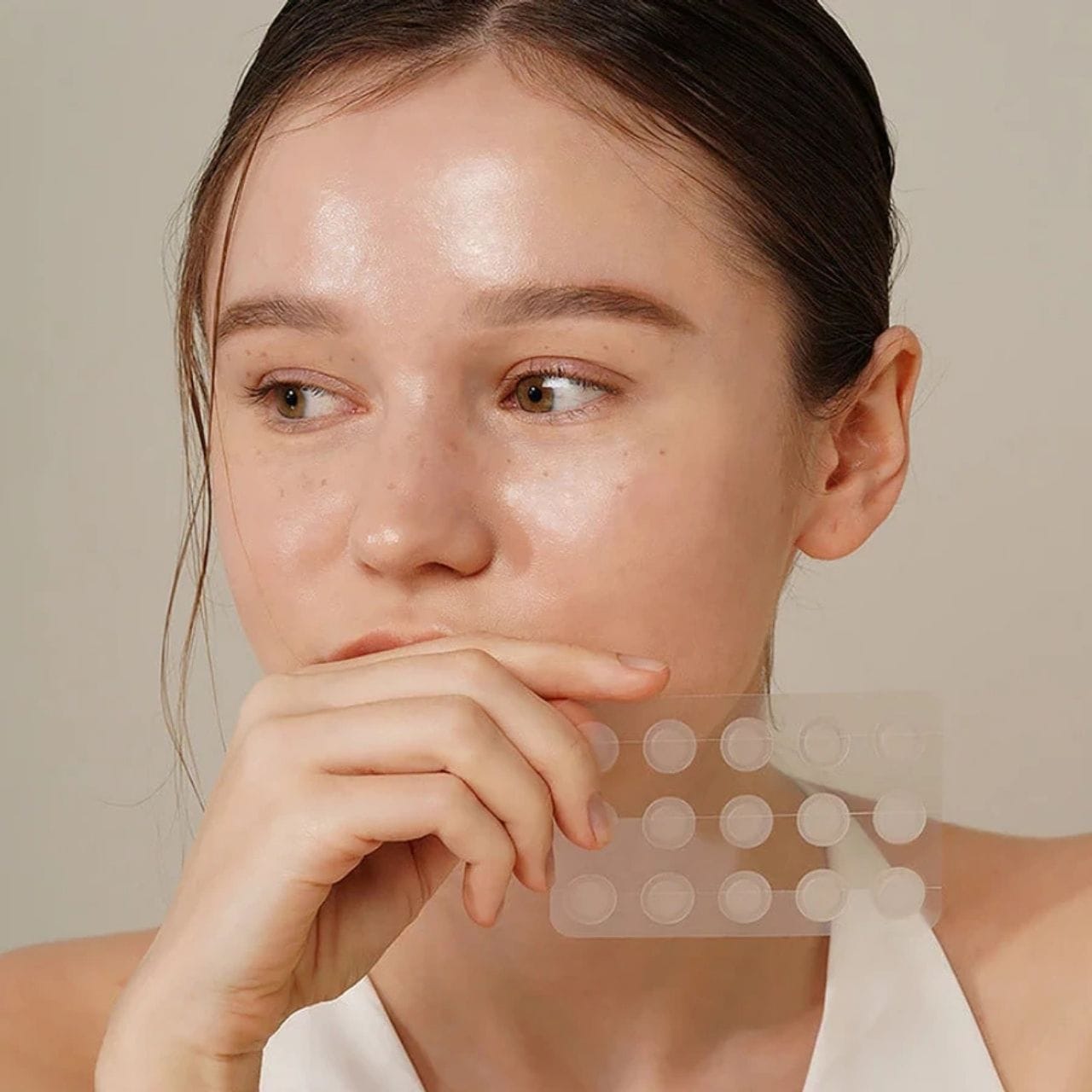 The pack contains 24 patches in two sizes — 10 mm for smaller lesions and 12 mm for larger spots. The patches are invisible on the skin, waterproof and adhere perfectly, so you can wear them all day or night.