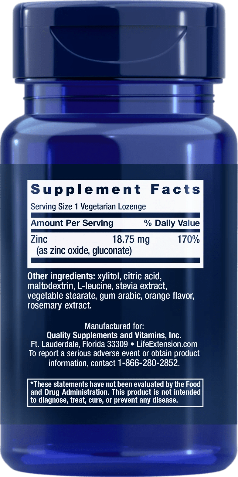 Cinko pastilės Life Extension - tai citrusinių vaisių ir apelsinų skonio maisto papildas pastilėse , kurio sudėtyje yra cinko oksido ir cinko gliukonato.
