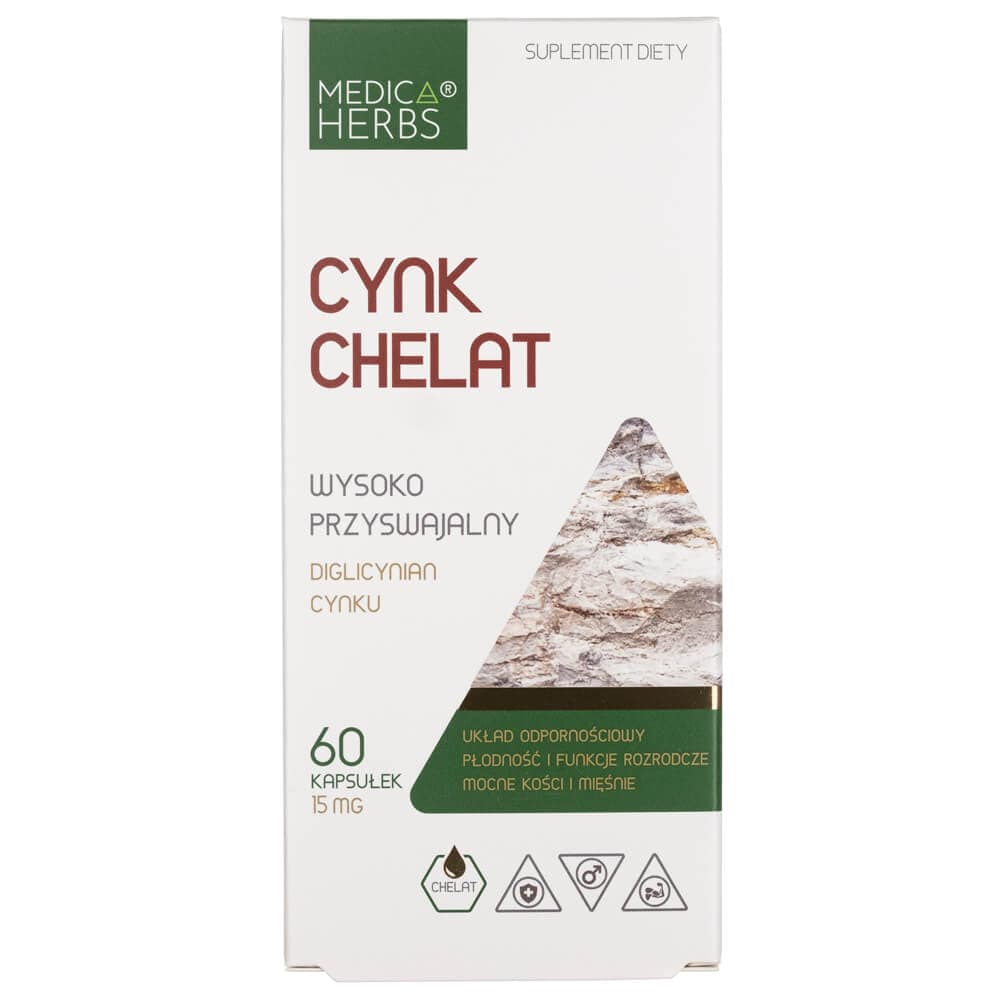 Cinko chelatas yra kapsulės pavidalo maisto papildas iš Medica Herbs, kurio sudėtyje yra cinko diglicinato. Chelato pavidalu esantis cinkas gerai įsisavinamas ir organizmo toleruojamas.