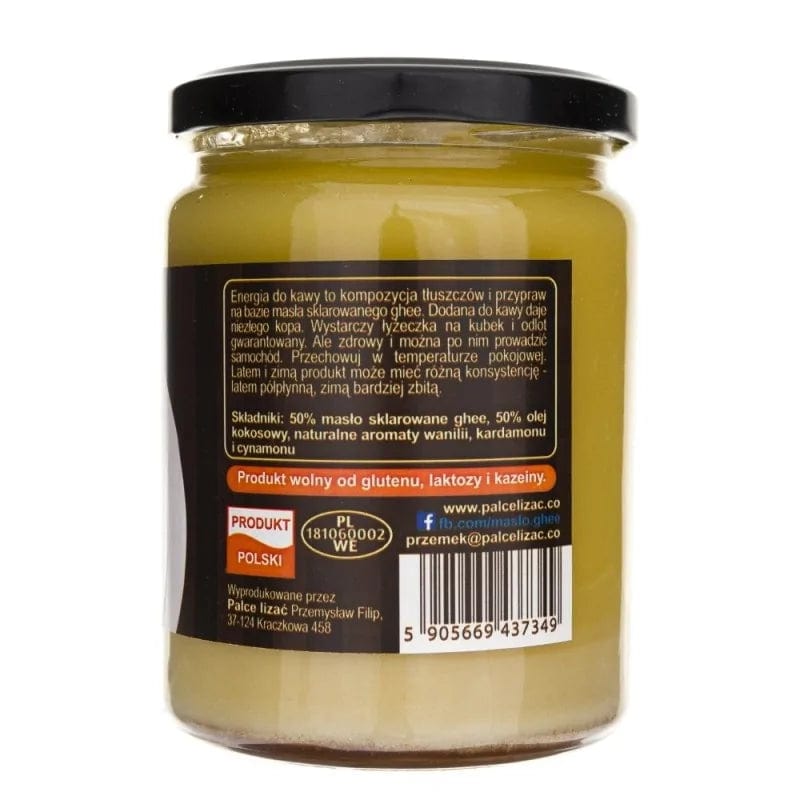 Energy for Coffee - tai sudetis, kurios pagrindą sudaro išvalytas ghi sviestas su nerafinuotu kokosu aliejumi, indiškas kardamonas ir cinamonas bei Madagaskaro vaniles lazdele.