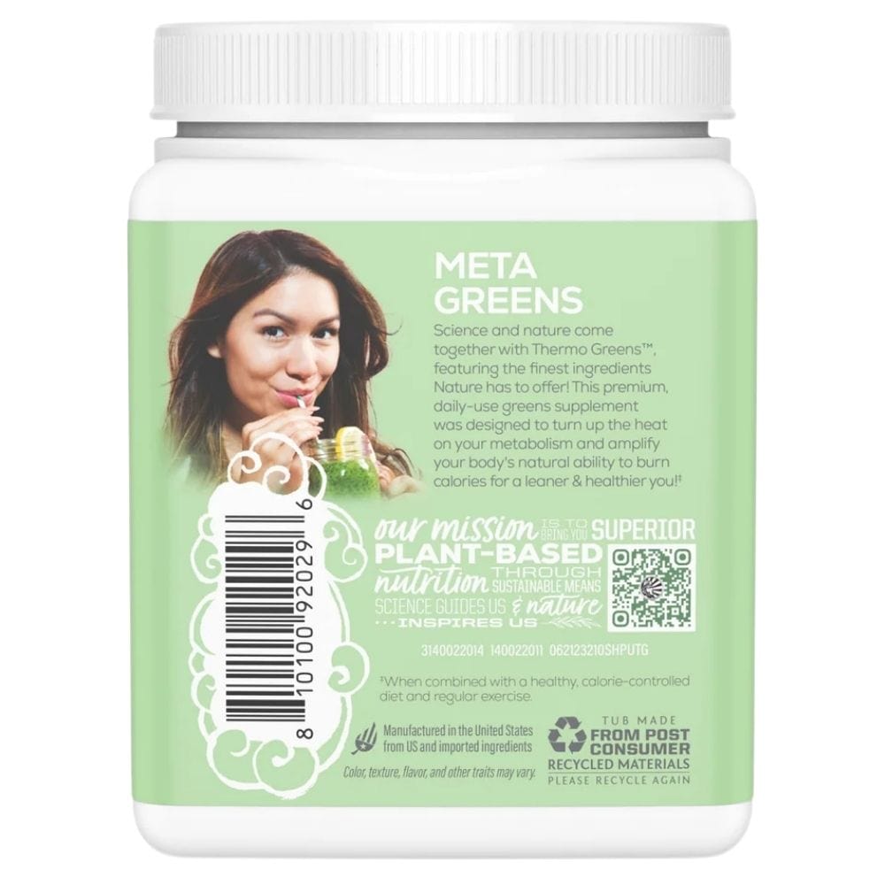 Sunwarrior SHAPE THERMO GREENS yra miltelių pavidalo maisto papildas, kurio sudėtyje yra 29 vaisių, daržovių ir žolelių mišinys. THERMO GREENS yra skirtas pagreitinti medžiagų apykaitą ir palaikyti sveiką kūno sudėtį su puikiu termogeniniu katalizatoriumi. Aukštos kokybės, klinikiniais tyrimais patikrinti ingredientai, kurie turi antioksidacinį poveikį, padeda kovoti su laisvaisiais radikalais ir aktyvina rudąjį riebalinį audinį, kuris degina riebalus ir maitina organizmą būtinomis žaliosiomis medžiagomis.