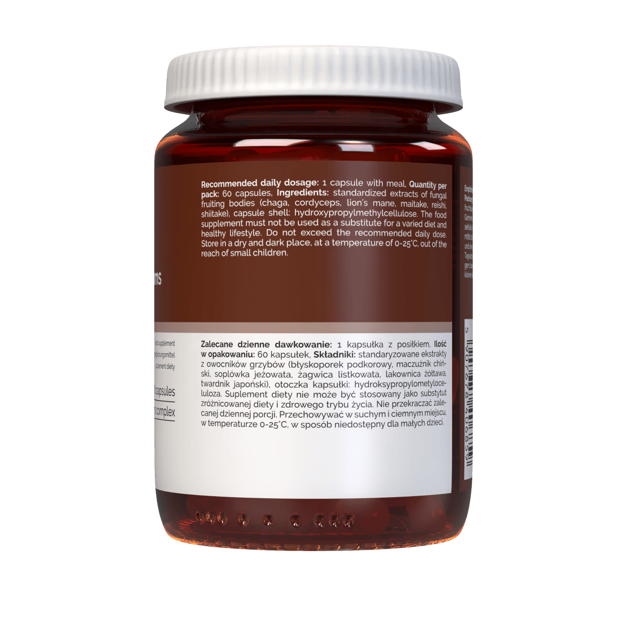 Unikalus šešių gyvybiškai svarbių grybų derinys, standartizuotas pagal (medžiagų polisacharidus, natūraliai randamus grybuose. Vaistiniai grybai turi tūkstantmetes tradicijas ir nuo seno naudojami tradicinėje medicinoje. Jie pasižymi imunostimuliuojančiu, hepatoprotekciniu, antimikrobiniu ir antioksidaciniu poveikiu.